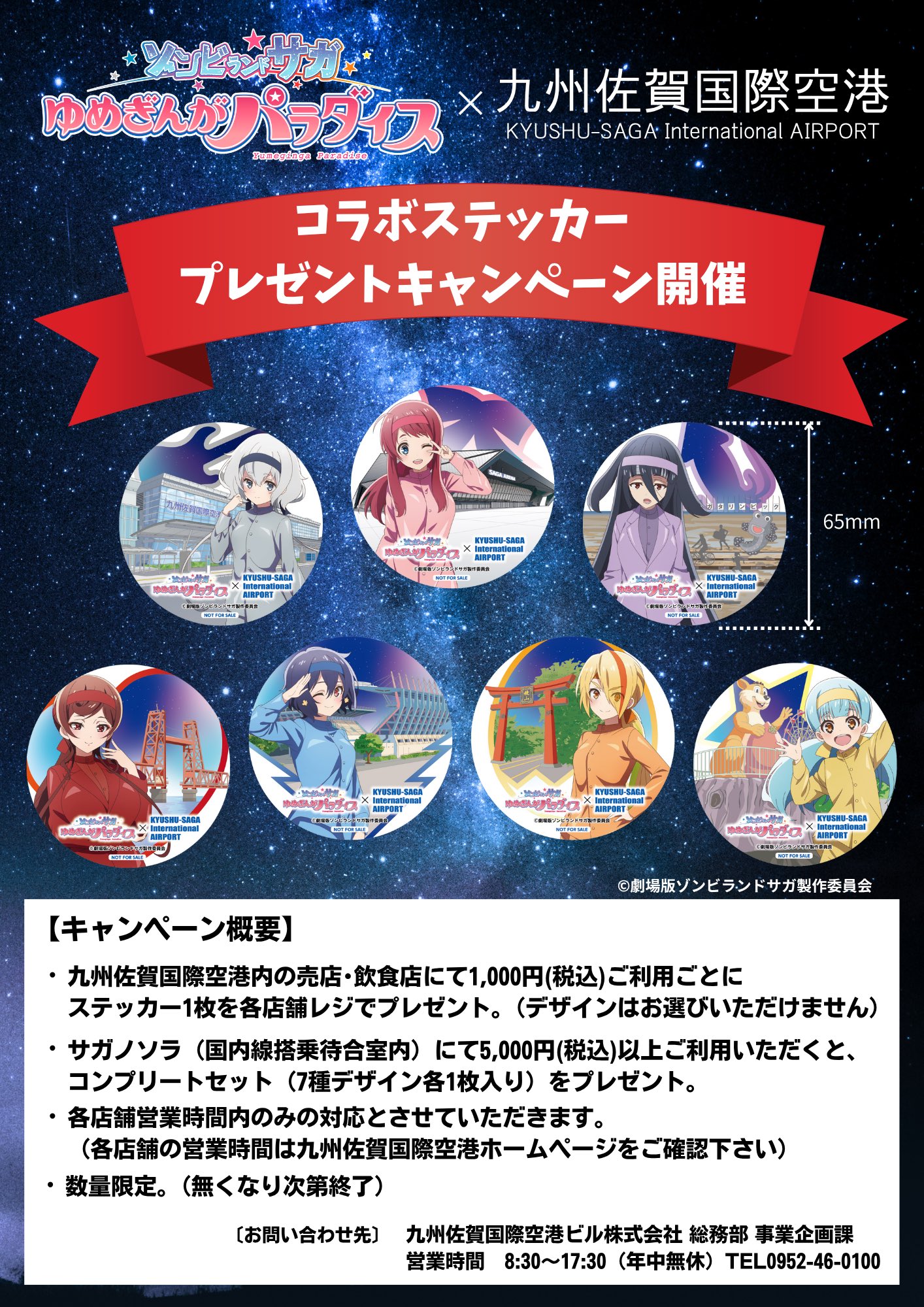 COLLABORATION 2025.11.04 『劇場版 #ゾンビランドサガ ゆめぎんがパラダイス』オリジナルステッカープレゼントin佐賀空港✈️ 佐賀空港にて『劇場版 #ゾンビランドサガ ゆめぎんがパラダイス』オリジナルステッカープレゼント中! 詳細は以下画像のポスターをご確認ください。 BACK TO LIST BACK TO TOP