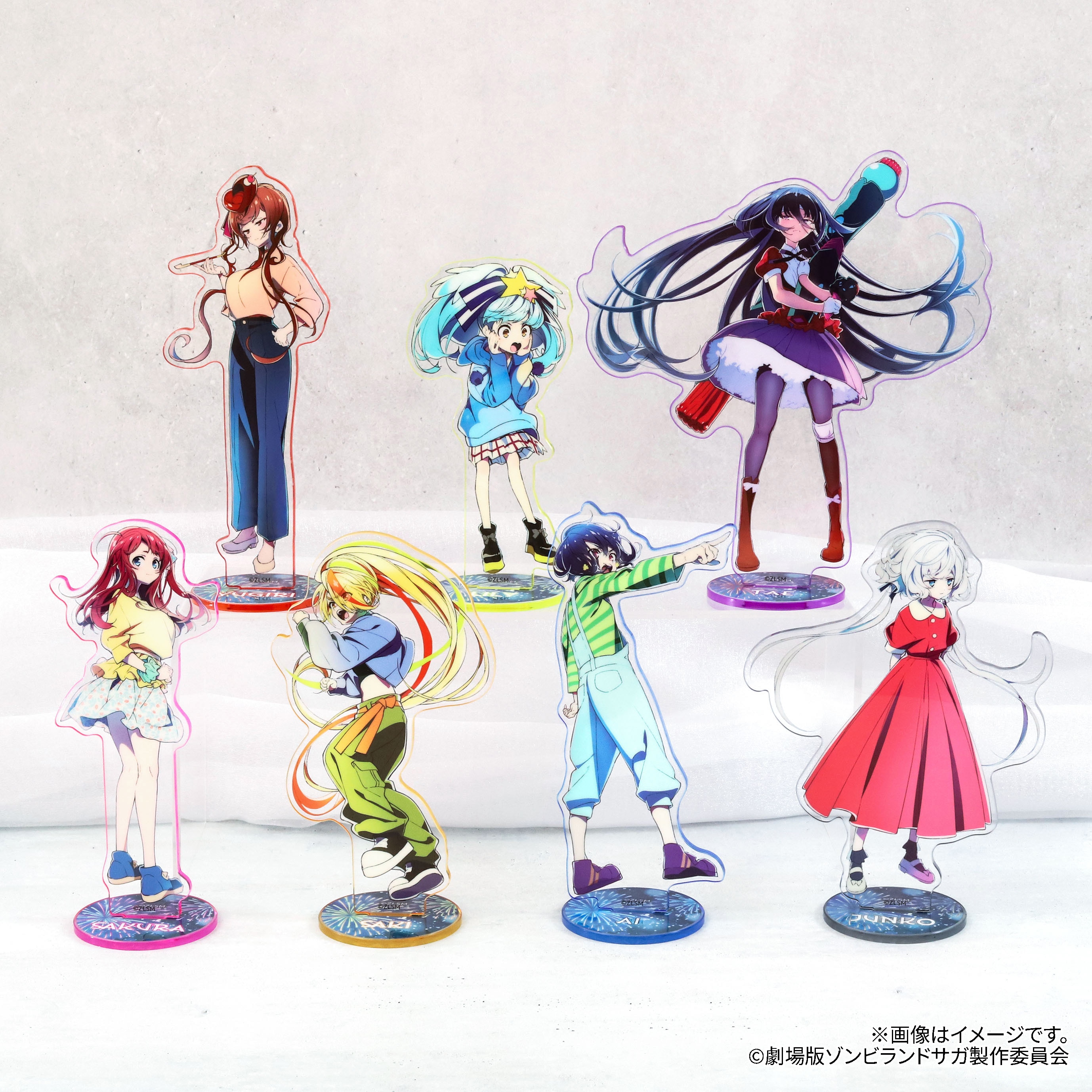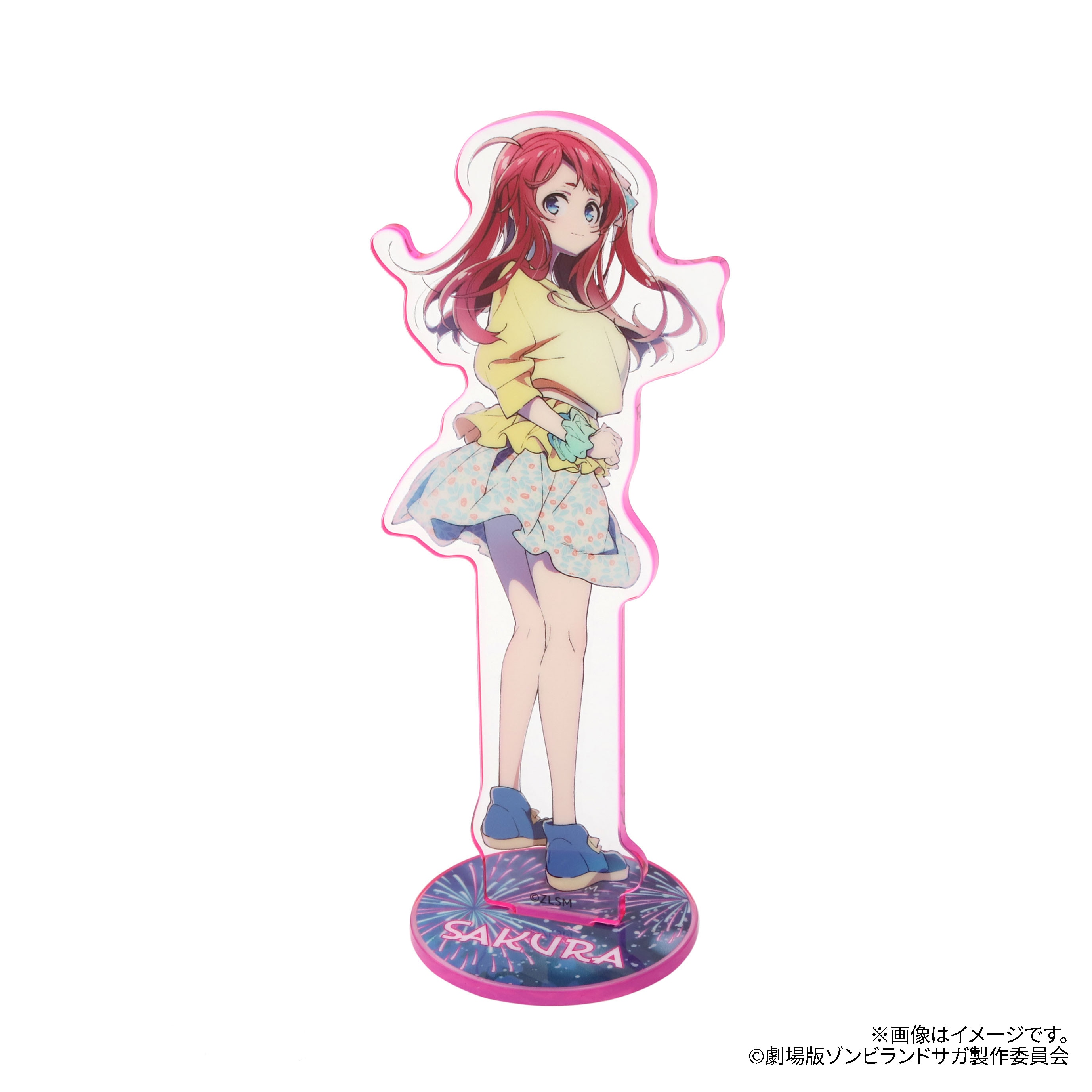 メインビジュアルを使用した縁がイメージカラーで着色されたアクリルスタンドが登場!