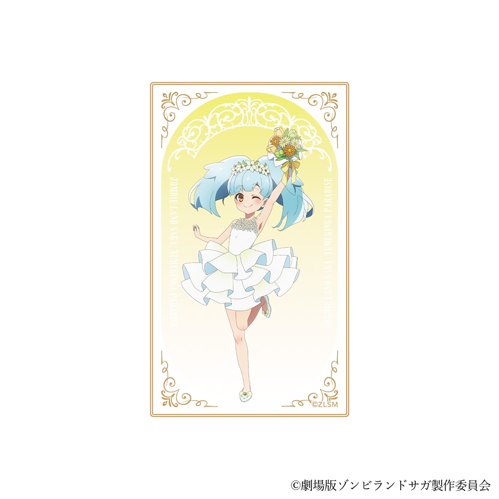 劇場版『ゾンビランドサガ ゆめぎんがパラダイス』より、新規描き下ろしイラストを使用したクリアシートコレクションが登場!キャラクターといろいろなものを並べて撮影したり、スマートフォンケースに挟んで楽しんだりできるアイテムです。