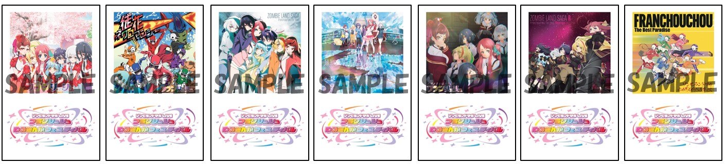 会場にて、ゾンビランドサガ関連のCD/Blu-rayを2,000円(税込)お買い上げごとに1点、ランダムで「歴代フランシュシュCD ジャケットカード」(全7種)をプレゼントいたします。